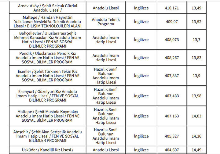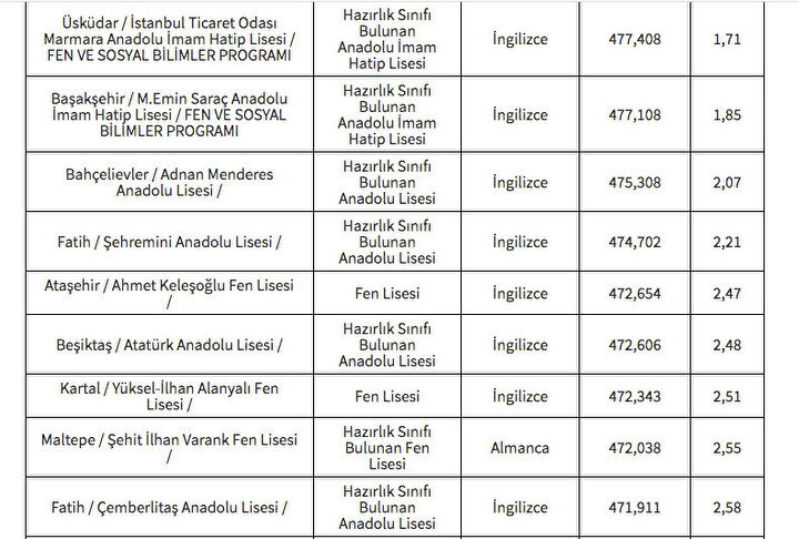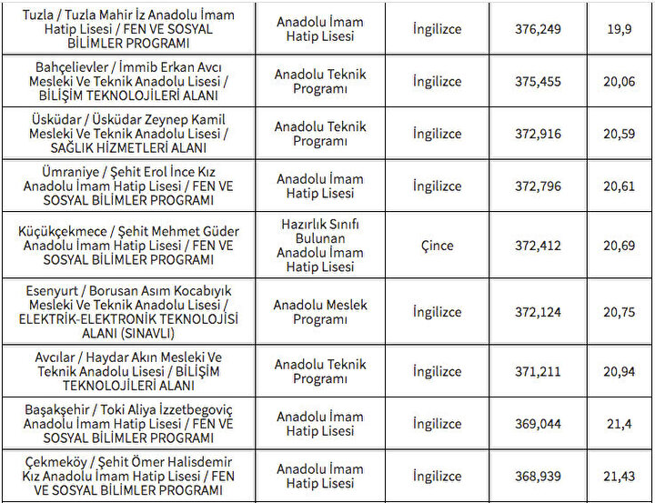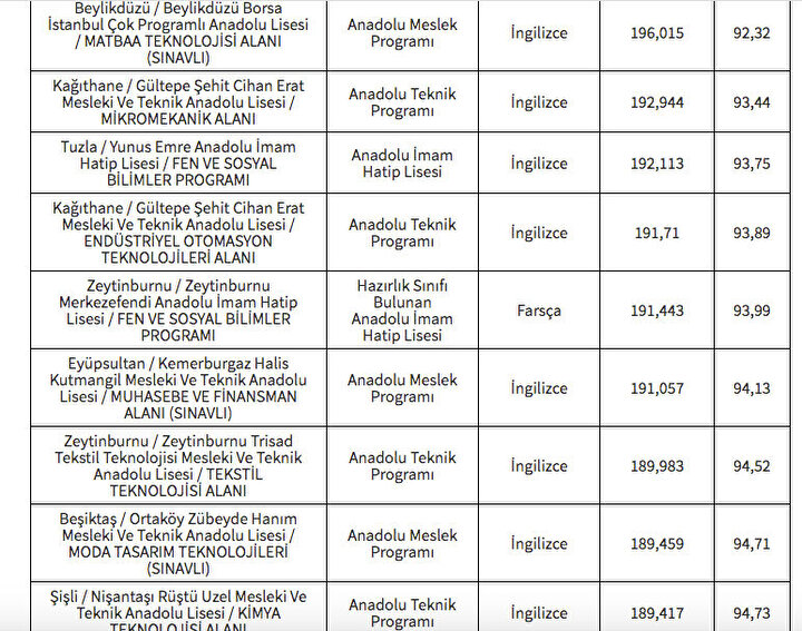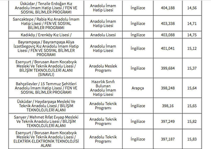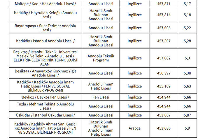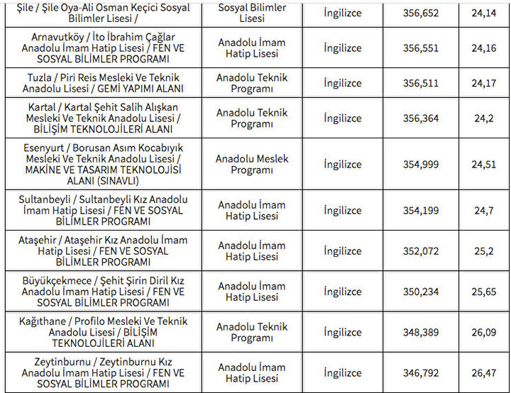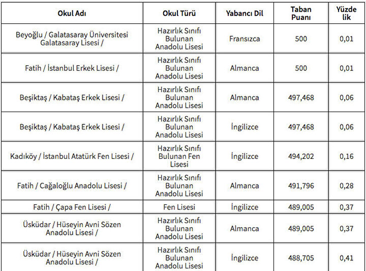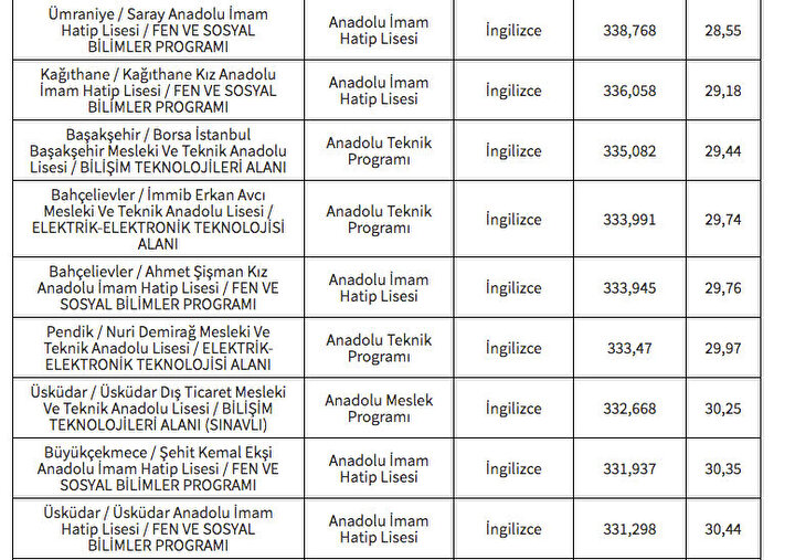 LGS taban puanları 2024 Lise yüzdelik dilimleri için tıklayın