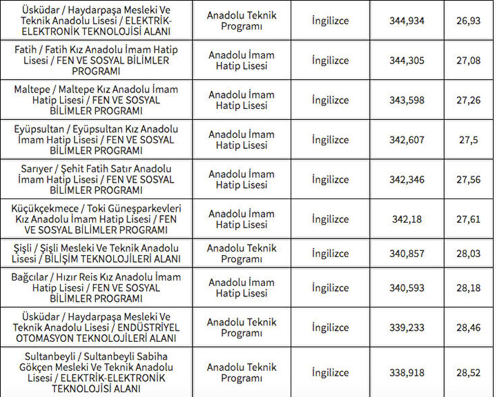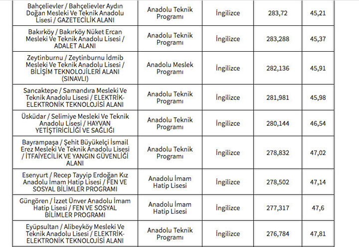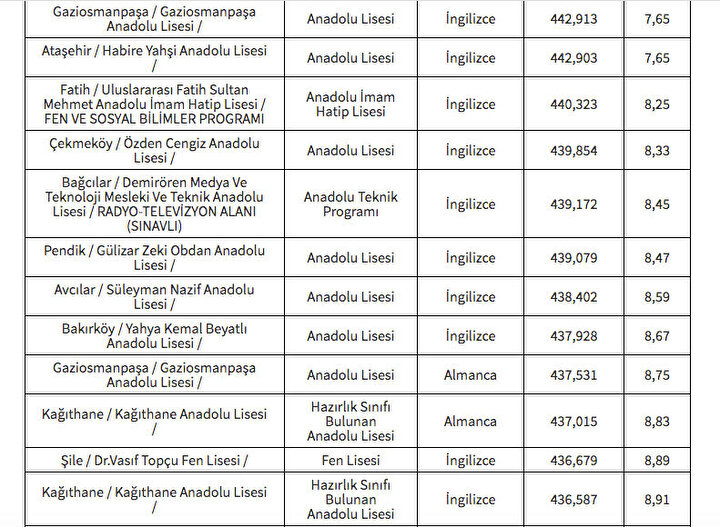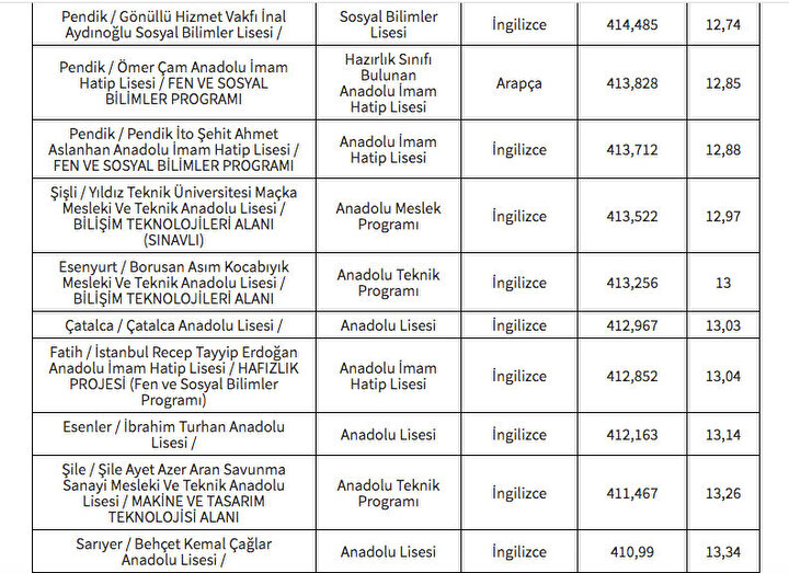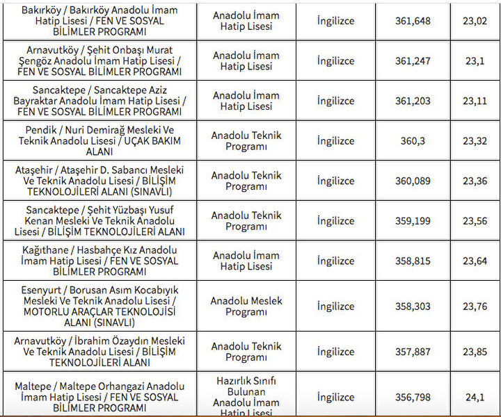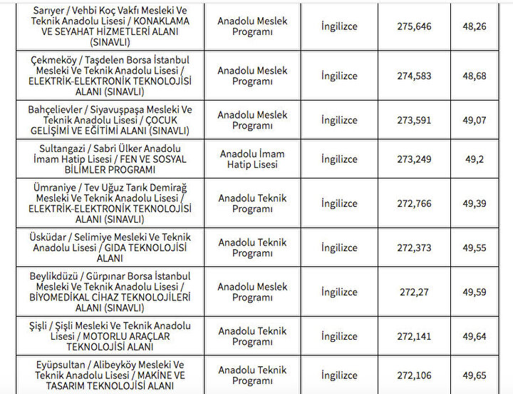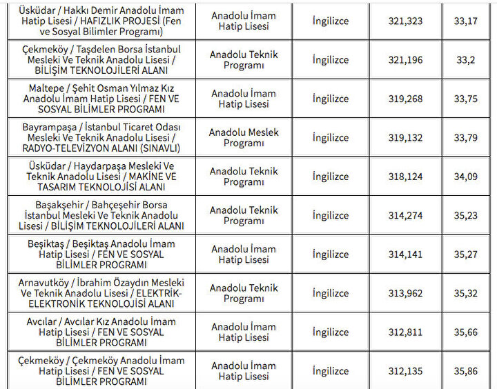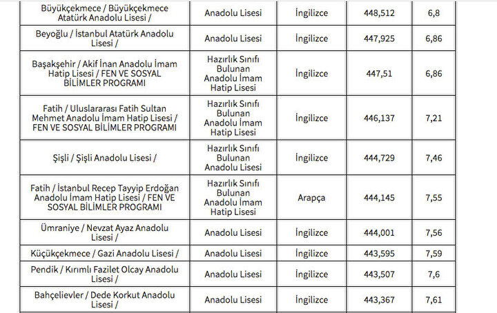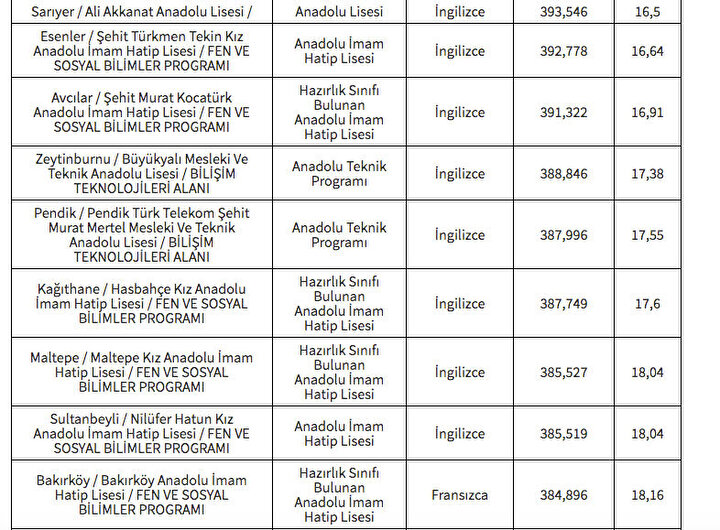 LGS taban puanları 2024 Lise yüzdelik dilimleri için tıklayın