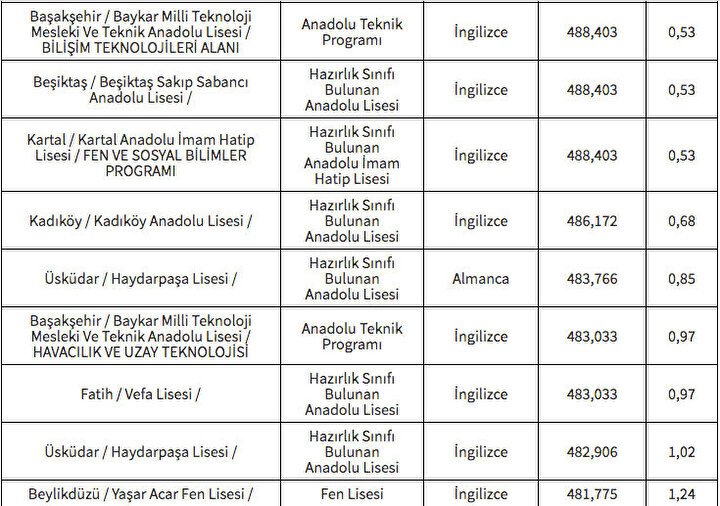 2024 LGS taban puanları ve yüzdelik dilimleri MEB tarafından açıklanmakta. İstanbul merkezi ve ilçelerinde yaşayan pek çok lise adayı genç İstanbul lise taban puanları hakkında araştırma yapıyor. Tercihlerinizi yaparken sadece taban puanlarına değil, aynı zamanda sıralamanıza ve yüzdelik diliminize de dikkat edin. 2024 taban puanları ve yüzdelik dilimleri henüz açıklanmadı.