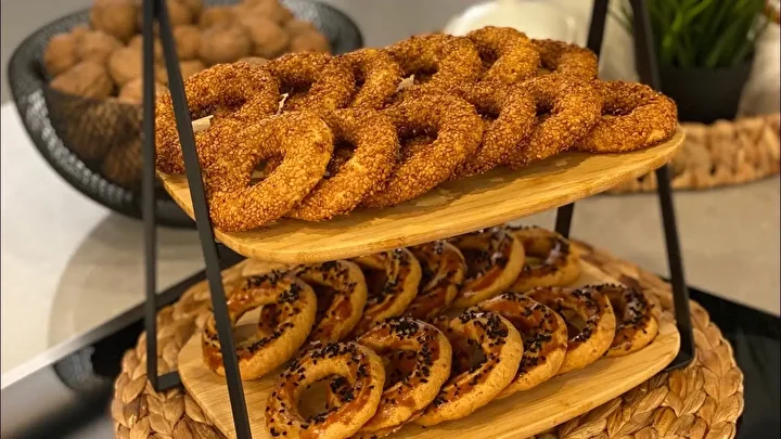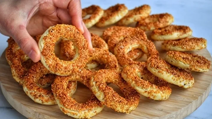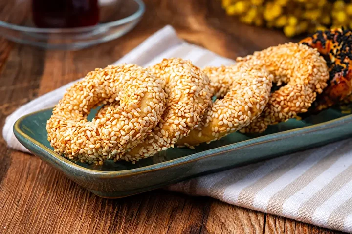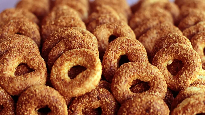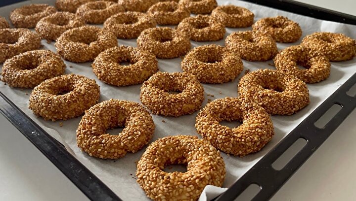 Hamurunuz hazır olunca ceviz büyüklüğünde parçalar alın ve elinizle yuvarlayın ve simit halka olacak şekilde iki ucunu da birleştirin. Simitlerinizi önce yumurta akına, ardından susama batırıp fırın tepsisine dizin. Üzerine de çörek otu serpip fırından güzelce pişirin.