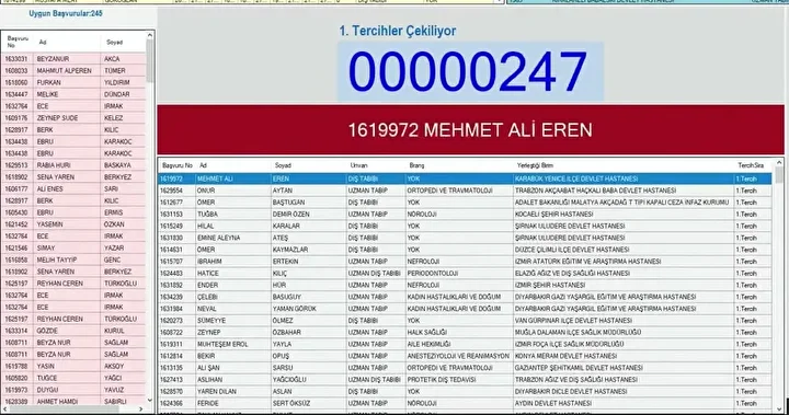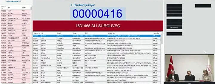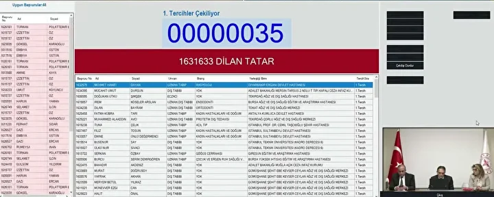 Kura çekilişi 07.10.2025 tarihinde saat 10:30 'da Bakanlığın Bilkent Yerleşkesinde Noter huzurunda gerçekleştirildi. Kura çekilişi Bakanlığın YouTube kanalı (https://www.youtube.com/user/SaglikBakanligi) üzerinden canlı olarak yayınlandı.