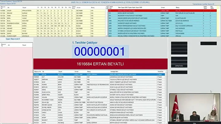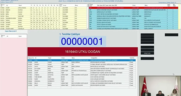 Sağlık Bakanlığı İlk Defa ve Yeniden Atama kura çekilişi başvuru yapan adayların gündeminde yer alıyor. Sağlık Bakanlığı 2025 Yılı 2. Dönem İlk Defa ve Yeniden Atama kura çekilişi bugün noter huzurunda gerçekleştirildi. İşte Sağlık Bakanlığı kura çekiliş sonuçları sorgulama ekranı.