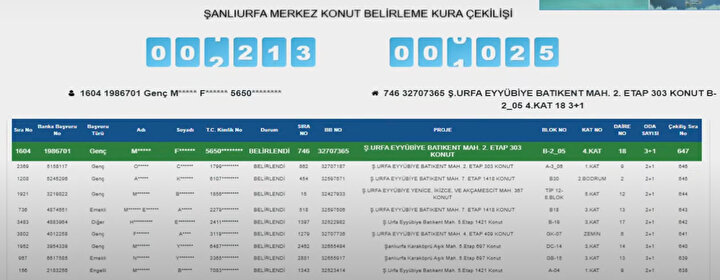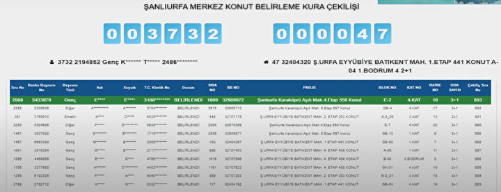 TOKİ Şanlıurfa’da konut belirleme kura sonuçları ile hak sahiplerinin konutların yerleri belirlendi. Toplu Konut İdaresi Başkanlığı (TOKİ) tarafından 250 Bin Sosyal Konut Projesi kapsamında, Eyyübiye Konut Projesi’nde inşa ettirilen; konutlar için konut belirleme kurası çekildi. İşte TOKİ Şanlıurfa Eyyübiye konut belirleme kura sonuçları isim listesi.