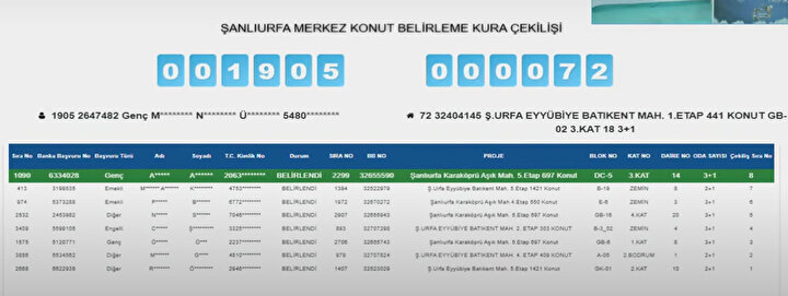 TOKİ tarafından 250 bin Sosyal Konut Projesi kapsamında başvuru toplanan Eyyübiye sosyal konut projesinde hak sahipleri için konut belirleme kurası çekildi. On projede toplam 2.907 konut yer aldı. İşte TOKİ Şanlıurfa Eyyübiye konut belirleme kura sonuçları isim listesi.