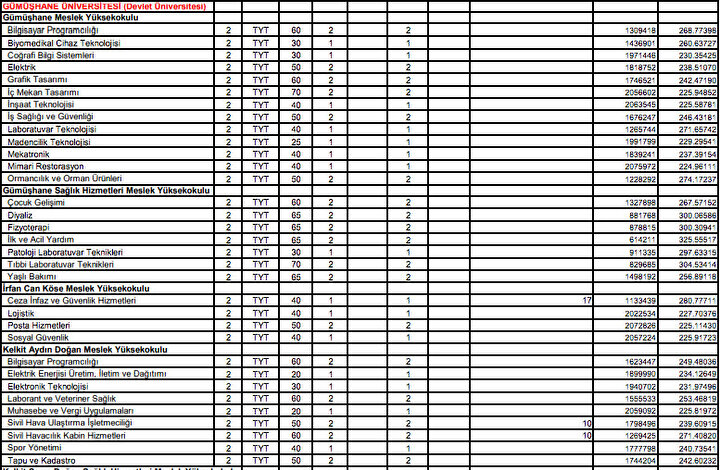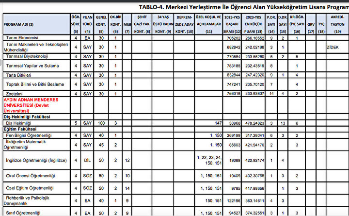 YKS AYT İle Öğrenci Alan Yükseköğretim Lisans Programları taban puanları, başarı sıralaması