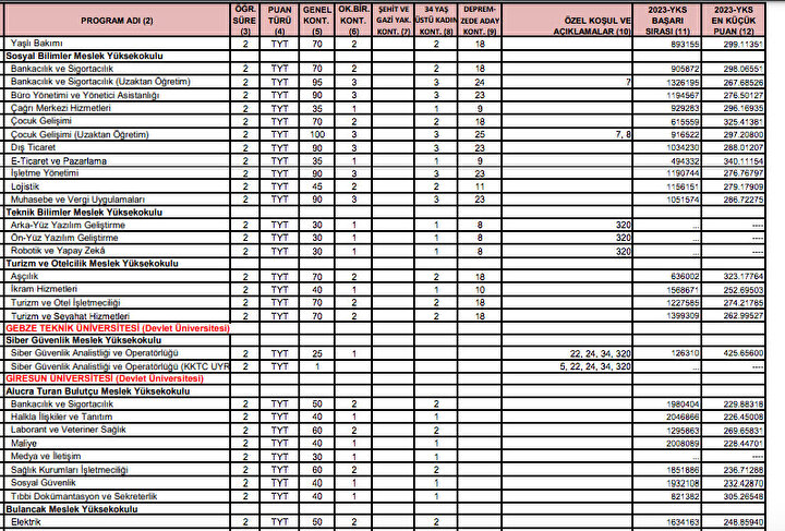 YKS sonuçların açıklanmasıyla birlikte üniversite tercih süreci 30 Temmuz-11 Ağustos tarihleri arasında resmen başlamış olacak. Bu süreçte en çok merak edilen konulardan biri, adayların elde ettikleri YKS yerleştirme puanları ve bu puanlara karşılık gelen başarı sıralamaları. Özellikle TYT ve AYT puanlarına göre 100, 200, 450, 600, 700, 800, 900 bin başarı sıralamasıyla öğrenci alan bölümler adaylar ve veliler tarafından yoğun bir şekilde araştırılıyor. Geçmiş yılların verileri ve üniversitelerin taban puanları, tercih döneminde adaylara önemli bir yol gösterici olacak. İşte ÖSYM 2 yıllık ve 4 yıllık bölümleri başarı sıralaması.