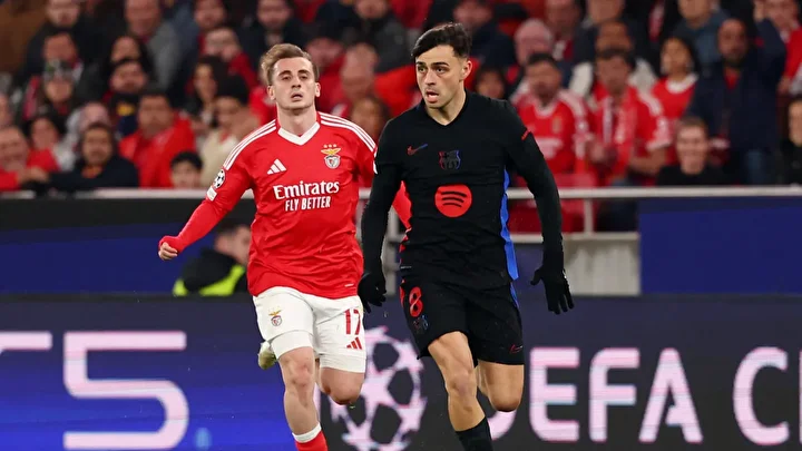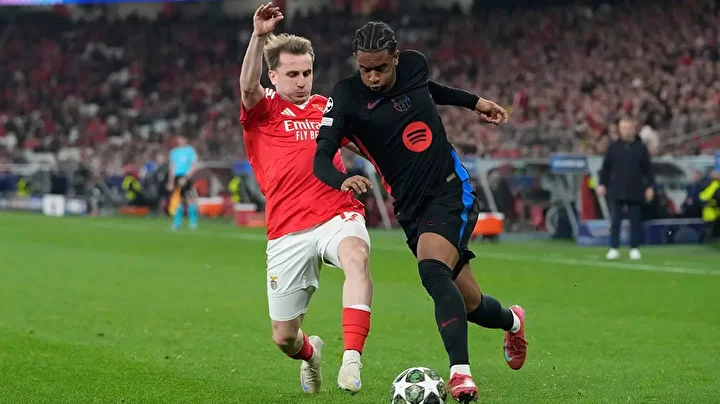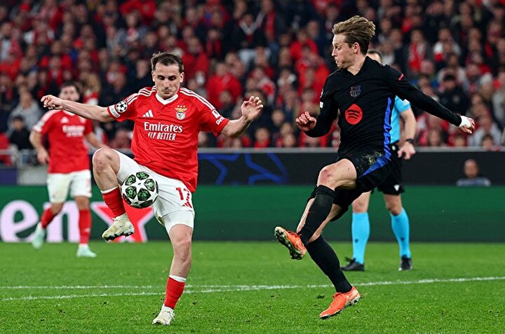 Milli futbolcular Kerem Aktürkoğlu ve Orkun Kökçü'nün formasını giydiği Benfica, Şampiyonlar Ligi son 16 turu ilk maçında Barcelona'yı ağırladı.