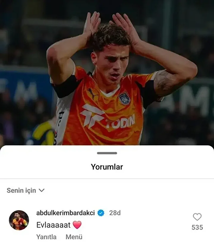 Galatasaray'ın stoperi Abdülkerim Bardakcı ise Bertuğ'un bu paylaşımına "Evlaaaaat" yorumunu bıraktı ve kırmızı kalp emojisi kullandı. Abdülkerim Bardakcı'nın Bertuğ Yıldırım'ın paylaşımına yaptığı bu yorum sosyal medyada kısa süre içinde viral oldu.