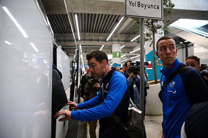 Yoğun güvenlik önlemleri altında ve spor şube polislerinin kontrolünde normal yolcu çıkışından geçerek otobüse bindi. Normal iç hatlar gelişten çıkış yapan ve hiç zaman kaybetmeyen İzlanda kafilesine otobüse kadar eşlik edildi.