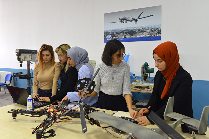 Türk Hava Kurumu (THK) Üniversitesi Mühendislik Fakültesi'nde öğrenim gören 5 kadın mühendis adayı, orman yangınlarının tespiti ve sınır güvenliğinde kullanılabilecek, 6 saat havada kalabilen ve şeffaf yapısı ile uzaktan fark edilemeyen insansız hava aracı (İHA) tasarladı. Öğrenciler, içi helyum gazı dolu balonla 6 saat uçabilen ve PVC (polivinil klorür) maddesiyle görünmez hale getirilen İHA ile Teknofest 2022'ye katılacak.