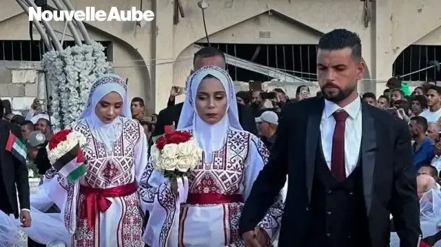 À Khan Younès, dans le sud de Gaza, 54 couples palestiniens ont célébré un mariage collectif au milieu des immeubles détruits. L’événement a offert un moment de joie rare après plus de deux ans de génocide israélien. Les mariés, vêtus de tenues traditionnelles, ont défilé avec les drapeaux palestiniens devant une foule rassemblée malgré les bombardements. Financé par l’organisation Al Fares Al Shahim, le mariage a permis aux couples de recevoir une dot et quelques biens essentiels, symbolisant la résilience du peuple palestinien face aux destructions.