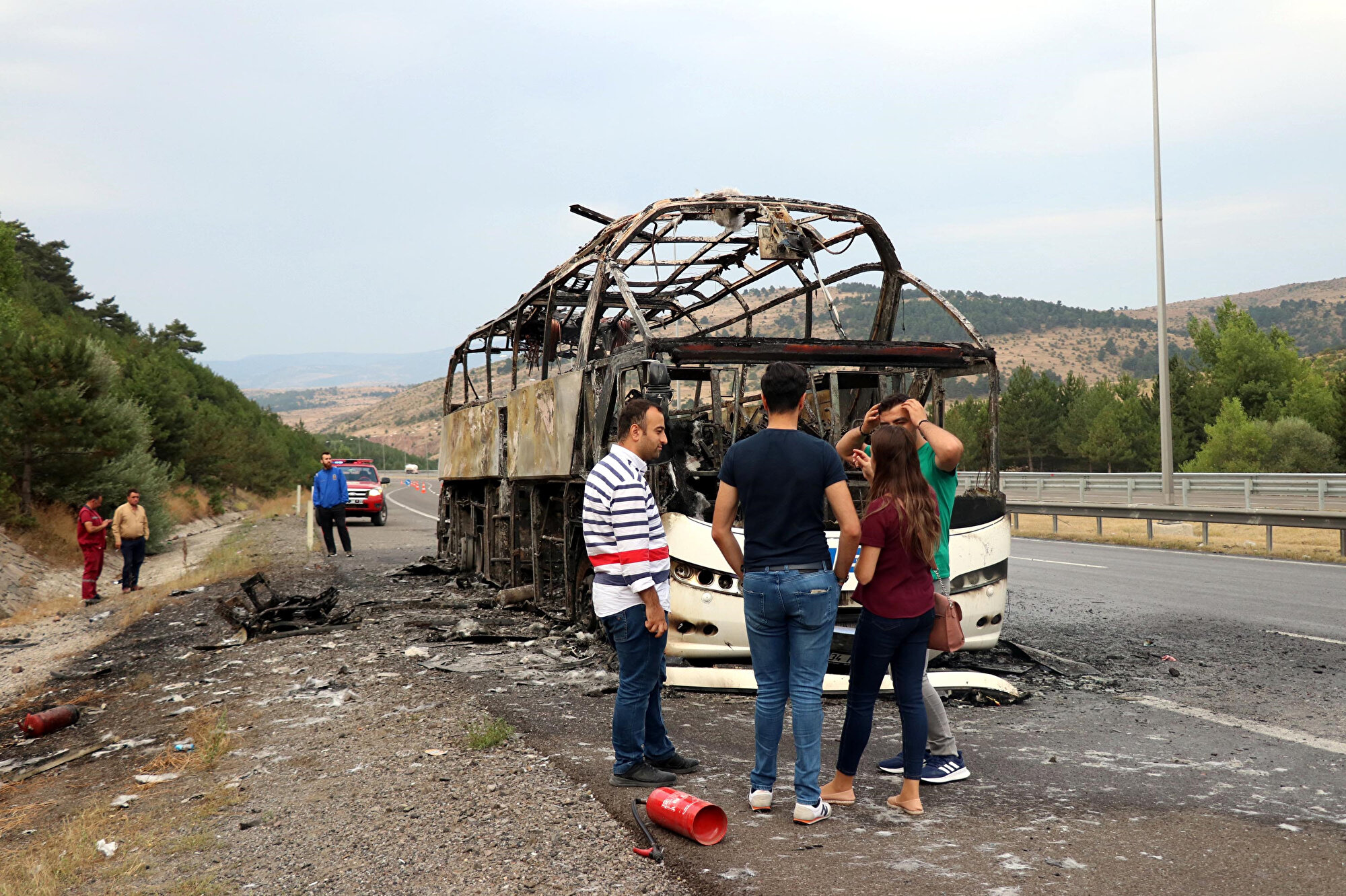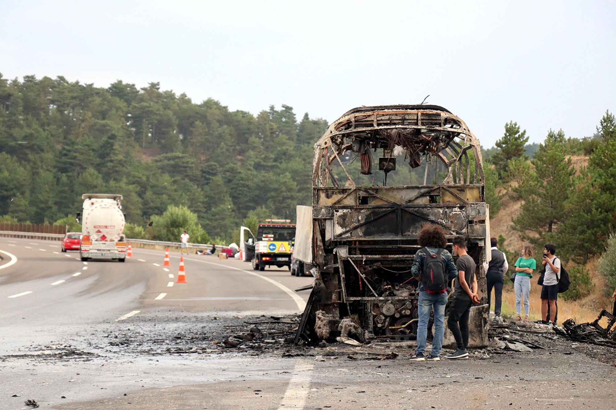 Balıkesir'de 5 kişinin öldüğü otobüs yangının ardından seyir halinde yanan otobüslere bir yenisi daha eklendi. Manisa ve Mersin'deki otobüs yangınlarının ardından bu sabah ise Anadolu Otoyolu'nun İstanbul yönüne seyir halindeyken alev alan yolcu otobüsü tamamen yandı. Yangının zamanında fark edilerek yolcuların araçtan indirilmesi sonucu ölen ya da yaralanan ise olmadı.