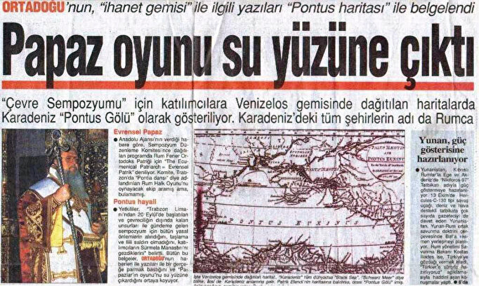 - Fener Rum Kilisesi öncülüğünde 20-28 Eylül 1997 tarihinde gerçekleştirilen “Karadeniz’i Kurtarma Çevre Kirliliği” kılıfı altında düzenlenen sempozyumun ardında Pontus hayali bulunuyordu. Bizans İmparatorluğu hayaliyle yanıp tutuşan Fener Rum Patriği Bartholomeos ile birlikte Rahmi Koç, uluslararası silah tüccarı Ağa Han, Dünya Yahudi Cemaatleri temsilcileri, bir yığın Yunanlı çevre bilimci ve işadamlarından oluşan 400 kişilik heyet, ‘Bilim ve Çevre Sempozyumu’ adı altında “Karadeniz’i kurtaralım” sloganı eşliğinde ‘Pontus’ rüyasını yeniden gündeme taşımıştı.