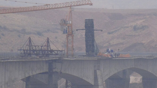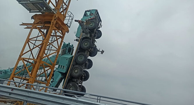 Batman’ın tarihi Hasankeyf ilçesinde yapımı süren, Türkiye’nin en uzun köprüsünde çalışan vinç devrildi.