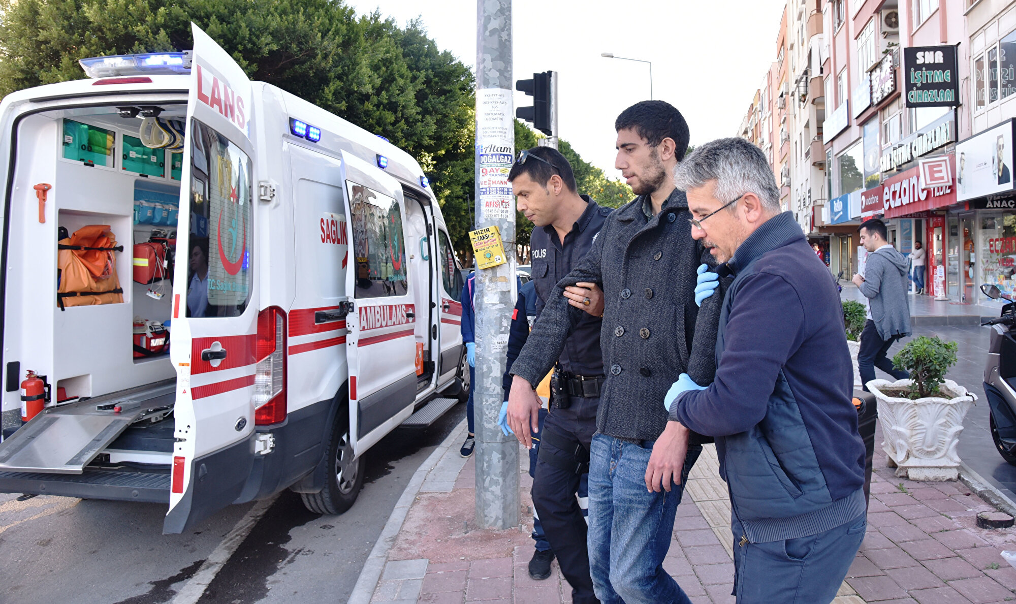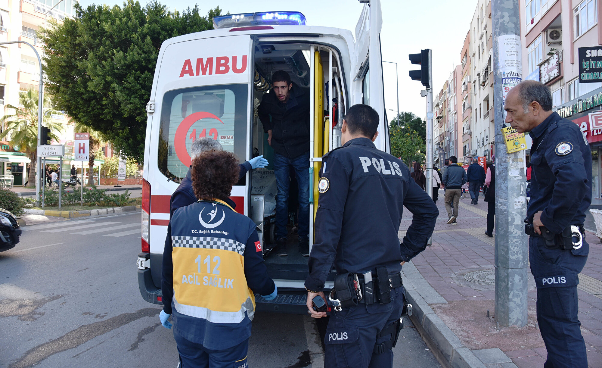 Antalya'da yaya geçidi önündeki kaldırımda ayakta hareketsiz duran İran asıllı Reza Drenkhshani, polise tepki vermeyince çağrılan ambulansla hastaneye götürüldü.