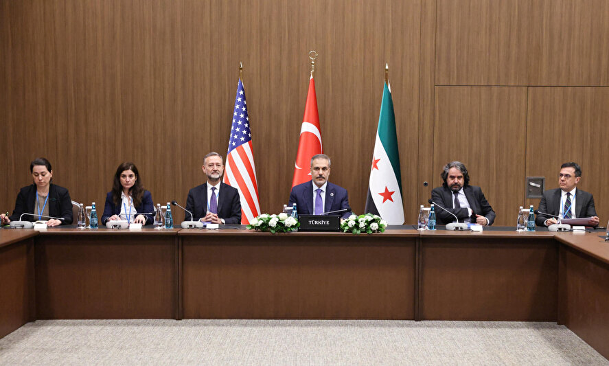 Görüşmeye, Dışişleri Bakanı Hakan Fidan, ABD Dışişleri Bakanı Marco Rubio ve Suriye Dışişleri Bakanı Esad Hasan Şeybani katıldı.