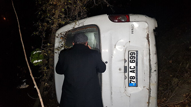 Karabük'te Karabük Mahallesi Ahmet Haşim Caddesi üzerinde meydana gelen kazada iddiaya göre, alkollü olduğu tahmin edilen Ali T. idaresindeki 78 AC 699 plakalı panelvan minibüsü yoldan çıktı. Kaldırıma çarparak yaklaşık 10 metre yükseklikten takla atarak şarampole devrilen araç ağaçlara çarparak durdu. Bu sıra aracın şarampole yuvarlandığını gören vatandaşların ihbarı üzerine olay yerine, polis, itfaiye, AFAD ve UMKE ile 112 ekipleri sevk edildi. Olay yerine kısa sürede ulaşan ekipler araçta ve çevrede kimseye ulaşamadı. Uzun sürede bölgede arama yapan ekipler, kimseye bulamayınca aracın sürücüsüne telefonla ulaştı. Ali T. kendisini arayan polislere
