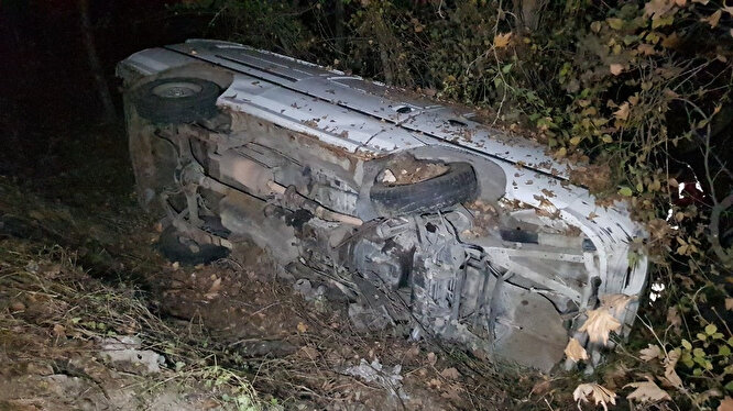 Karabük'te şarampole yuvarlanan araç