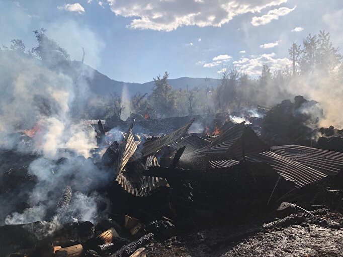 İhbar üzerine olay yerine gelen itfaiye ekipleri, alevleri kontrol altına alarak, yangını söndürdü. Ancak evler ve ahırlar küle dönerken, 3 büyükbaş telef oldu. Yangının çıkış nedeninin belirlenmesi için inceleme başlatıldı.