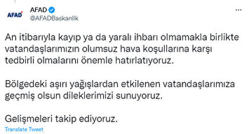 - Bölgedeki aşırı yağışlardan etkilenen vatandaşlarımıza geçmiş olsun dileklerimizi sunuyoruz.