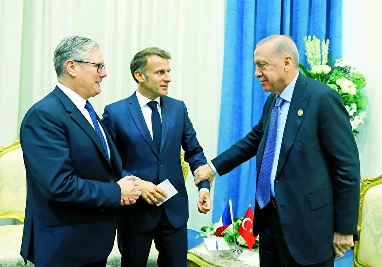 - Cumhurbaşkanı Erdoğan, imza töreni öncesinde Fransa Cumhurbaşkanı Macron ve İngiltere Başbakanı Starmer ile fotoğraf çektirdi. Cumhurbaşkanı Erdoğan, Macron’a Starmer’ı işaret ederek, “Good man” dedi. Erdoğan, İtalya Başbakanı Meloni’ye de “İyi görünüyorsun ama sigarayı bıraktırmam lazım” diyerek takıldı.