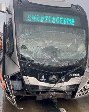 Kaza nedeniyle Küçükçekmece istikametinde bir süre aksayan metrobüs seferleri, araçların yoldan çekilmesiyle normale döndü.