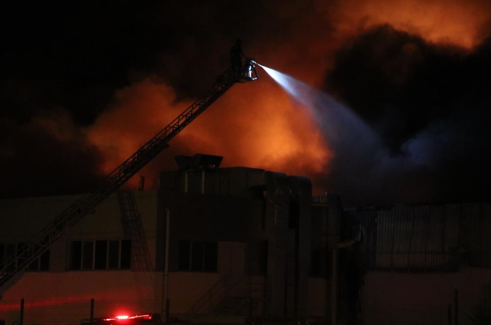 Fabrikanın bazı duvarları, itfaiye ekiplerinin müdahalesini kolaylaştırması amacıyla iş makinesi yardımıyla yıkıldı.