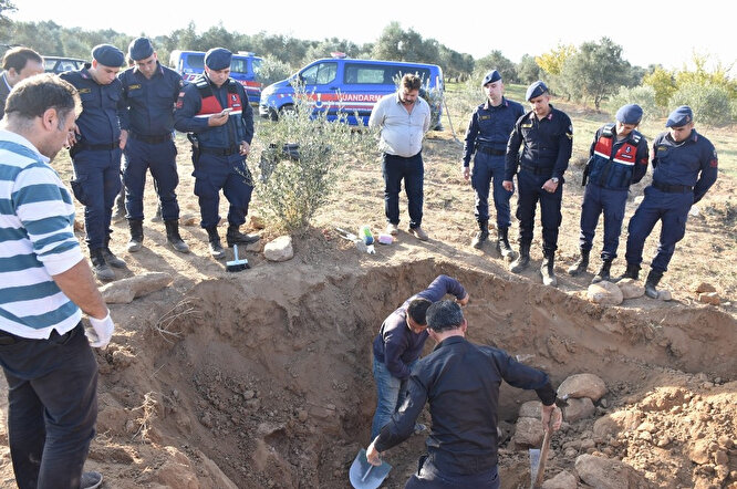Bir istihbaratı değerlendiren güvenlik güçleri zeytinliğe giderek incelemelerde bulundu. İncelemeler sırasında bir kısmı açıkta olan bir taş dikkat çekti. Bunun bir tarihi eser olabileceği ihtimali ağırlık kazanırken olay savcılığa intikal etti.