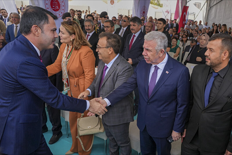 Çevre, Şehircilik ve İklim Değişikliği Bakanı Murat Kurum Ankara'da inşa edilecek yeni Adalet Sarayı'nın temel atma töreninde önemli açıklamalarda bulundu. Ankara, İstanbul ve İzmir büyükşehir belediye başkanları ile gerçekleştirdiği görüşmelerle ilgili konuşan Bakan Kurum, "Hangi partiden olursa olsun milletvekillerimizle, belediye başkanlarımızla ortak akıl masaları kuruyor, birlikte çaba sarf ediyoruz. İstanbul’la görüşüyor, beklenen İstanbul depremi ve kentsel dönüşüm ile ilgili atılması gereken adımları hatırlatıyor, bizim de sahada olduğumuzu ifade ediyoruz. İzmir’le görüşüyor; bu ülkenin ortak değeri olan İzmir Körfezi’ni yeniden hayata döndürmeye dair sorumluluklarını hatırlatıyor; sürecin takipçisi olduğumuzu ifade ediyoruz. Ankara’yla istişare ediyor; başkentimizin acil ve stratejik ihtiyaçlarına dair görüşlerimizi belirtiyor; bir Ankaralı olarak her konuda Ankara’nın yanında olduğumuzu ifade ediyoruz" dedi.