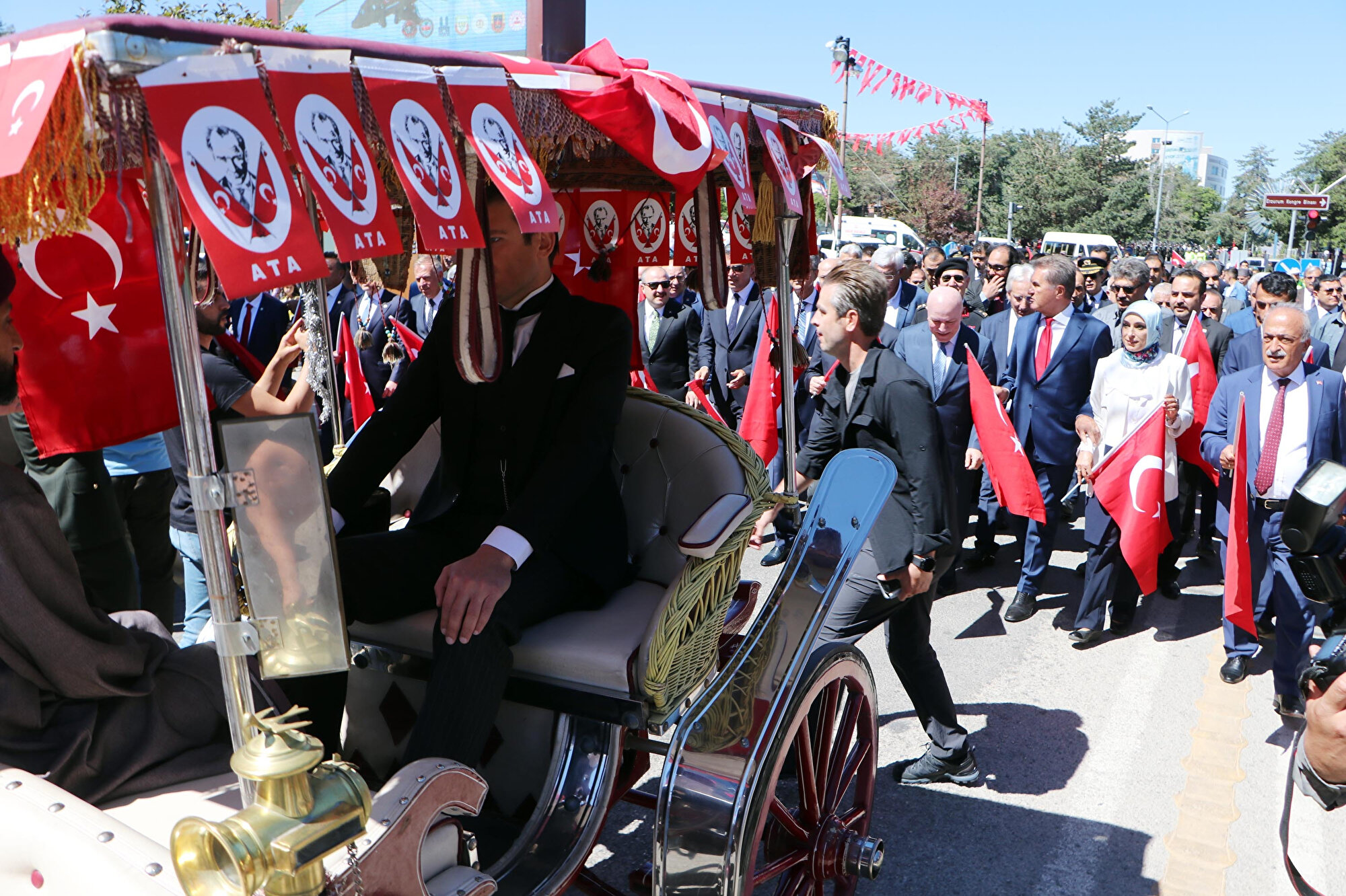 Havuzbaşı Kent Meydanı'ndaki çelenk sunumundan sonra protokol ve vatandaşlar dev Türk bayrağı ve Atatürk posteri eşliğinde 3 kilometre uzaklıktaki kongre binasına kadar yürüdü. Yakutiye ilçesindeki tarihi binadaki törende Mustafa Kemal Atatürk ile Rauf Orbay ve Hoca Raif'i canlandıran oyuncular, kongre binası önüne faytonla geldi. Atatürk'ü, Devlet Tiyatrosu Sanatçısı Onur Emre Teber canlandırdı. Devlet Tiyatroları oyuncularının kongre başlangıcını sahneledikleri anları davetliler ilgiyle izledi. Kongrenin temsili canlandırılması sonrası Kazım Karabekir'i oynayan Samet Talayman, Ticaret ve Teknoloji Bakanı Mustafa Varank ve Vali Okay Memiş'e Türk bayrağı verdi. Varank ve Memiş bayrağı öperek teslim aldı.