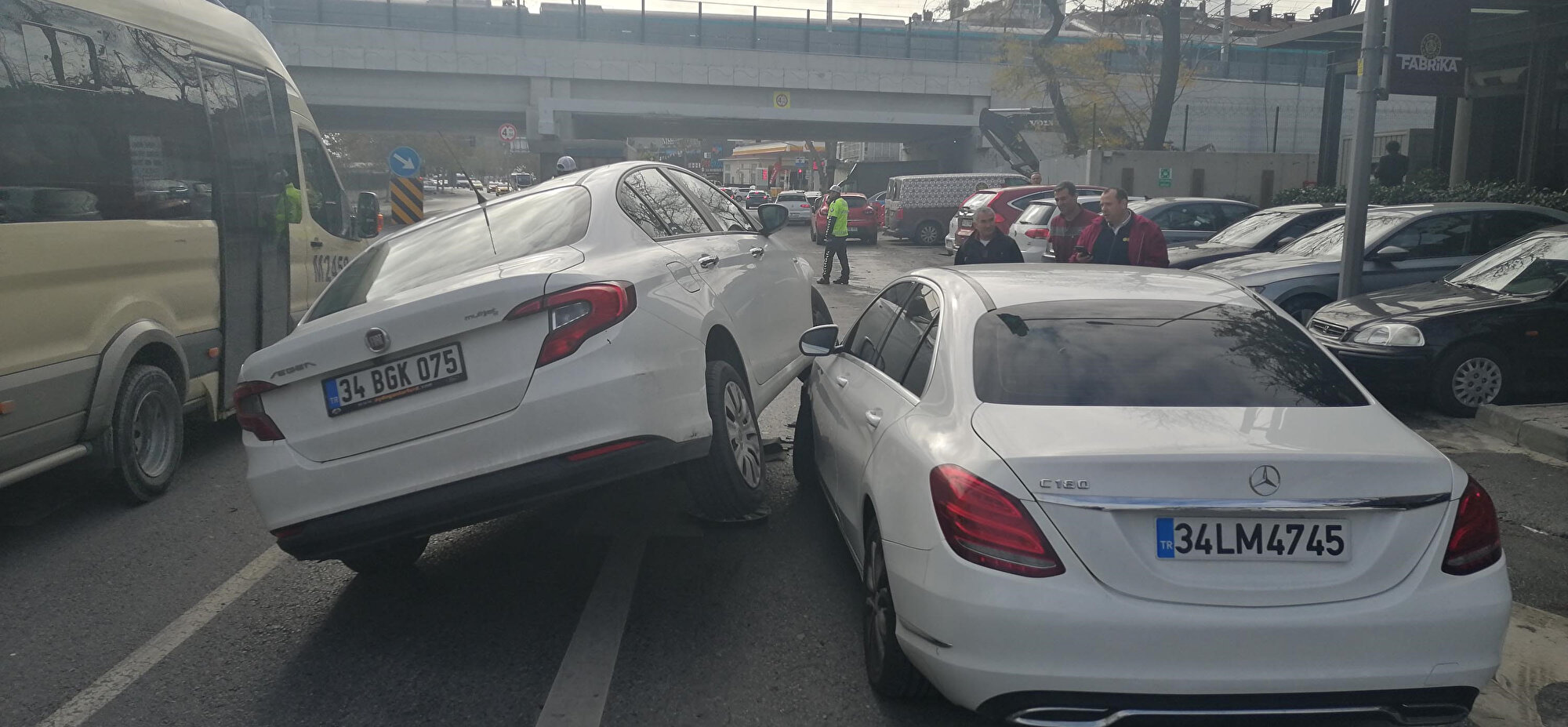 Bakırköy'de Aksu Caddesi'nde meydana gelen kazada otomobil, aniden önüne çıkan başka bir otomobilin üzerine çıktı. Kaza sonrası caddede trafik akışı tek şeride düştüğü için araç yoğunluğu oluştu.