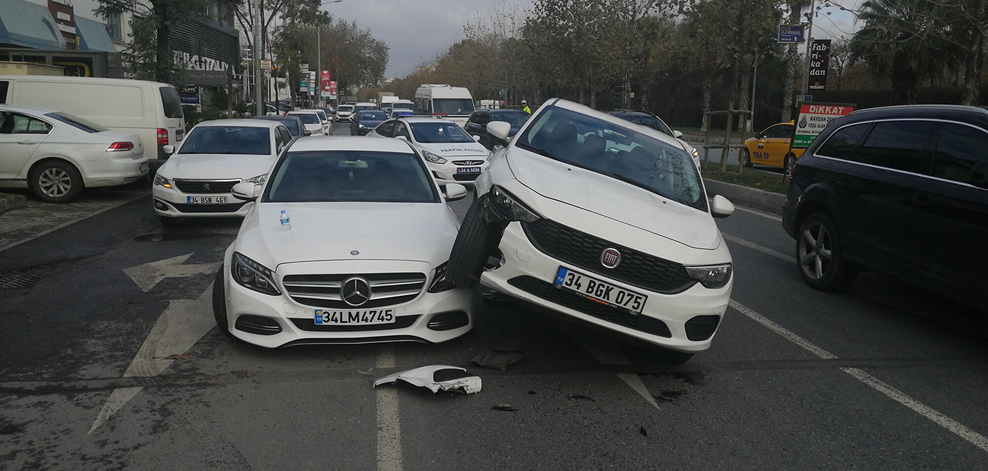 Kaza sonrası caddede trafik akışı tek şeride düştüğü için araç yoğunluğu oluştu.