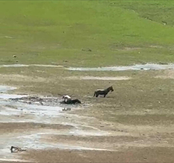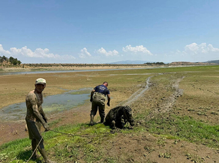 Alaşehir ilçesinde su aramak için Avşar Barajı'na gittiği sanılan 2 katır, bataklığa saplandı. Durum fark eden Mehmet Yöntem de katırlarını kurtarmak için baraja girdi. Yöntem de bir süre sonra beline kadar balçığa saplandı.