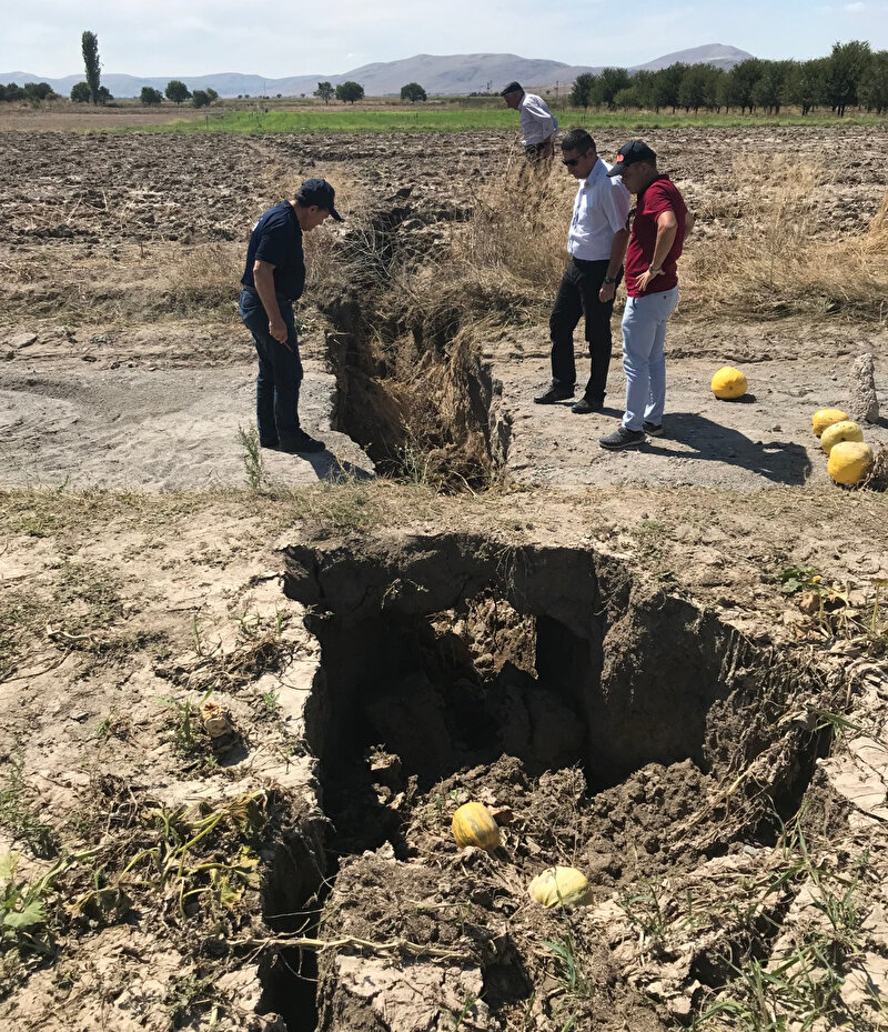 İlçeye bağlı Doğanlı köyünde tarlalarında derin yarıkların oluştuğunu görünce endişelenen köylüler, durumu Afet ve Acil Durum Yönetimi Başkanlığı (AFAD) İl Müdürlüğüne bildirdi.