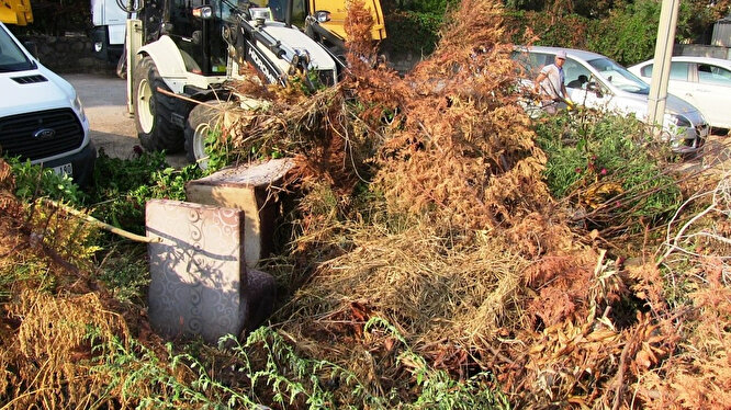 Ortakent Mahallesi’nde 1 iş makinesi, 2 kamyon, 2 kamyonet ve 25 personelden oluşan temizlik timi ile işe koyulan ekipler, sabah saatlerinden itibaren Müsgebi, Yahşi, Gürece ve Yakaköy Mahallelerinde çöp konteynırları dışına, kaldırım üstlerine, yol üzerlerindeki duvar diplerine bırakılan bahçe atıkları, eski ev eşyaları, çuvallar dolusu inşaat molozu, karton, plastiklerden oluşan ve görüntü kirliliğine yol açan çöpleri topladı.