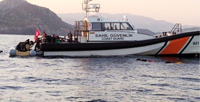 Bodrum Görecek açıklarında devriye görevi yürüten Sahil Güvenlik botu tarafından tespit edilen hareketli 2 ayrı lastik bot durdurularak içerisindeki