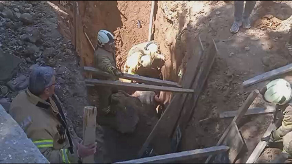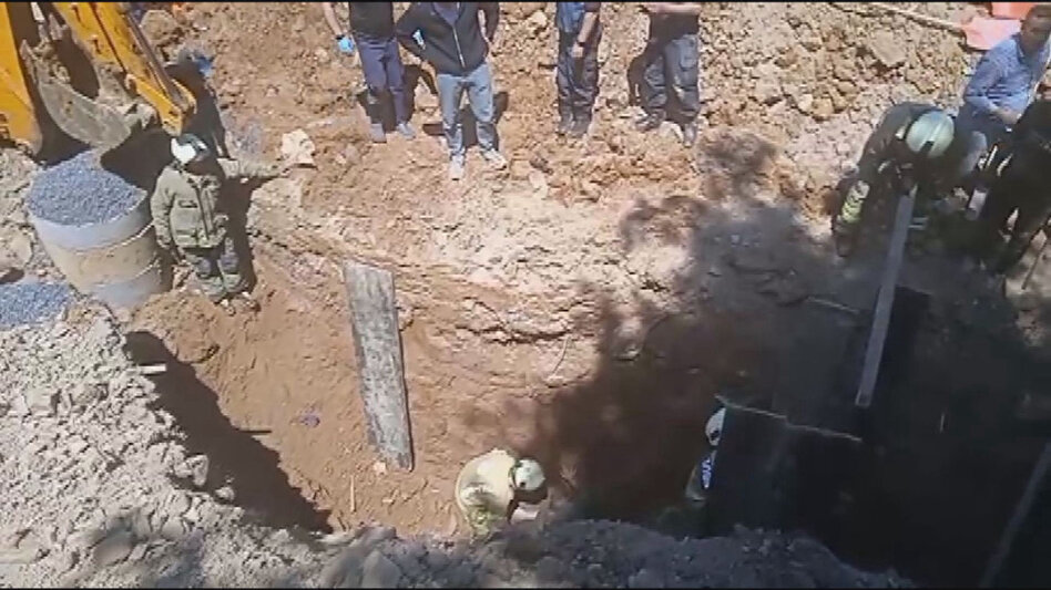 Göçük altında kalan iki işçiyi kurtarmak için olay yerine itfaiye, AFAD ve sağlık ekibi sevk edildi.