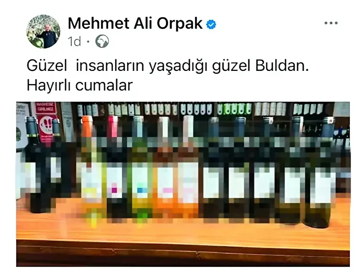 CHP’li Denizli Buldan Belediye Başkanı Mehmet Ali Orpak, sosyal medyada dini değerlerle dalga geçen skandal bir paylaşıma imza attı. Alkol şişeleri olan bir görselle, "Hayırlı cumalar" paylaşımı yapan Orpak, gelen tepkiler üzerine mesajından fotoğrafı kaldırdı.