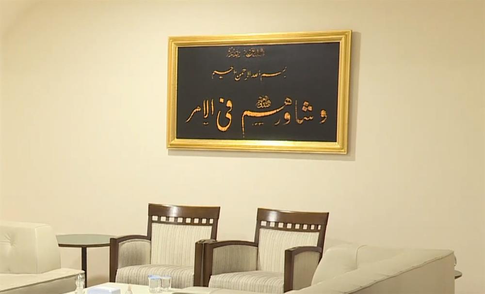 CHP Grup Başkanvekili Özgür Özel, TBMM Genel Kurul Salonu'nun Başkanlık Divanı'nın arkasındaki odada yapılan tadilatları eleştirerek, duvarlara asılan yüce kitabımız Kur'an-ı Kerim'deki ayetten rahatsız oldu.
