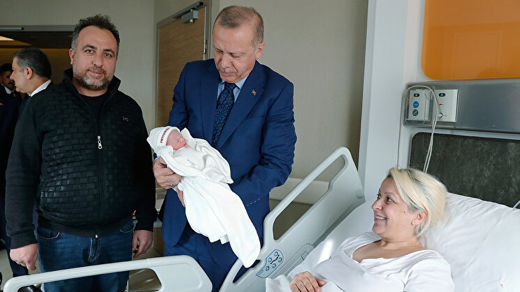 Kazan'ın tedavi gördüğü hastanede diğer bazı hastaları da ziyaret eden Cumhurbaşkanı Erdoğan, yeni doğan bir bebeği sevdi.