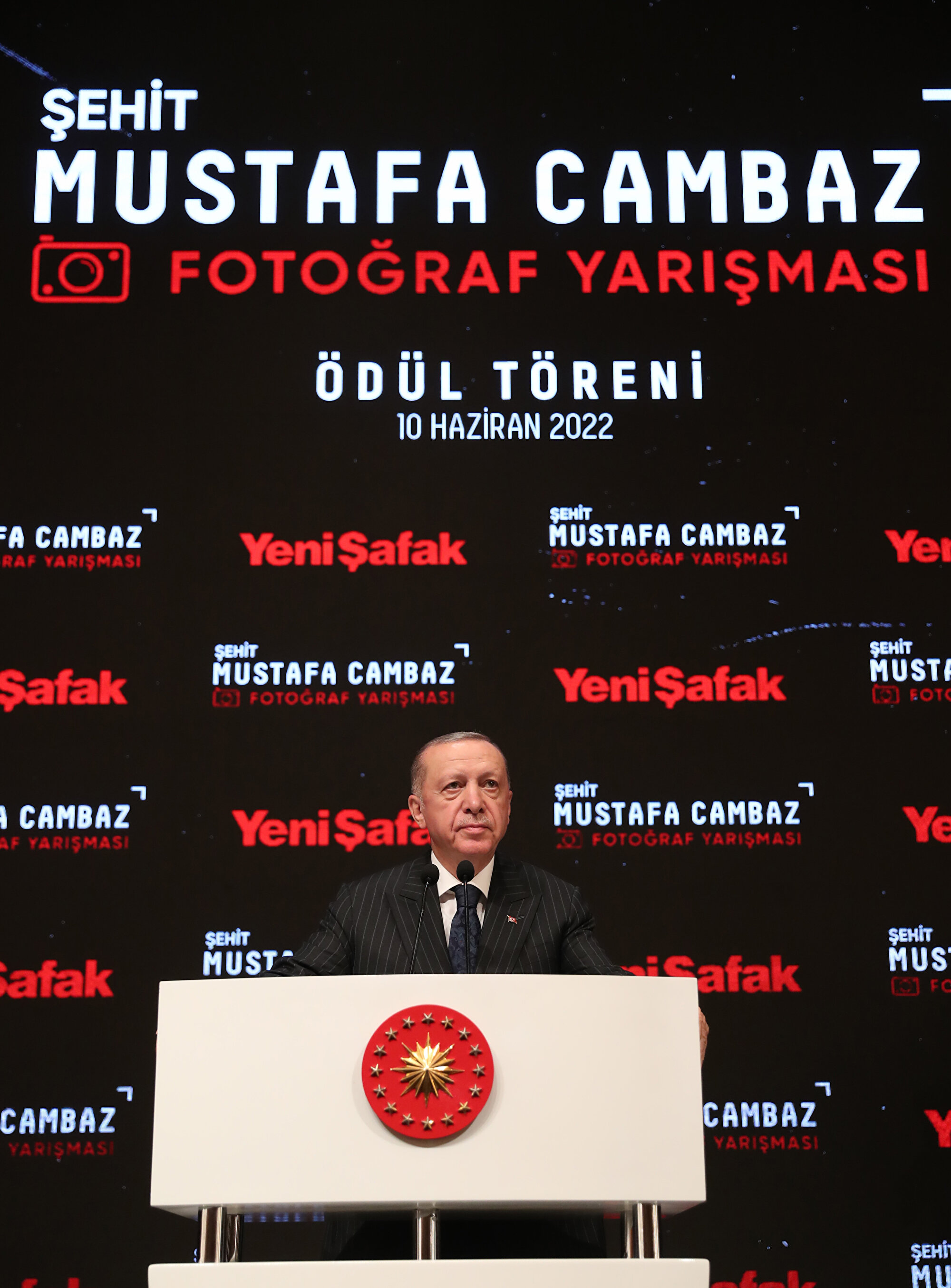 Şehit Cambaz'a Allah'tan rahmet, ailesine ve tüm şehit yakınlarına sabır dileyen Erdoğan, Yeni Şafak gazetesini böyle bir yarışma ile şehit Mustafa Cambaz'ın aziz hatırasını yaşattıkları için tebrik etti.