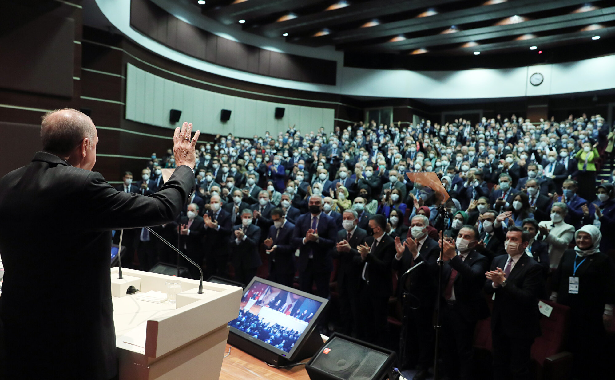 Şimdi çok daha büyük bir atılımın içine girdik. Türkiye'yi dünyanın en büyük 10 ekonomisinden biri haline getirecek adımları atıyoruz. Gezi olaylarından 17/25 Aralık'a kadar her saldırı aynı gaye ile tertip edilmiştir. Bizi yolumuzdan döndürmeye muvaffak olamadılar. Dünya salgınla başlayan sağlık krizi ve ekonomik krizle sarsılırken Türkiye hedeflerine doğru yürüyüşünü hızlandırmıştır. İhracatta 2021'i açıkladık, 225 milyar doların üzerinde bir rakamla tamamlamamız doğru yolda ilerlediğimizin göstergesidir. Bu millet çalışıyor ama ana muhalefet yavruları ile birlikte bu çalışmaları görmüyor.