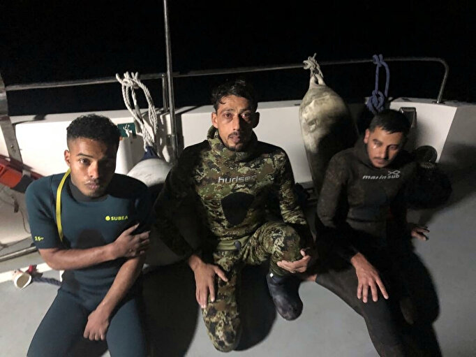 Bu kez saat 02.22'de, Akyarlar Hüseyin Burnu açıklarında dalgıç kıyafetli 3 kişinin, yüzerek Yunan adalarına geçmeye çalıştığı bilgisi alındı.