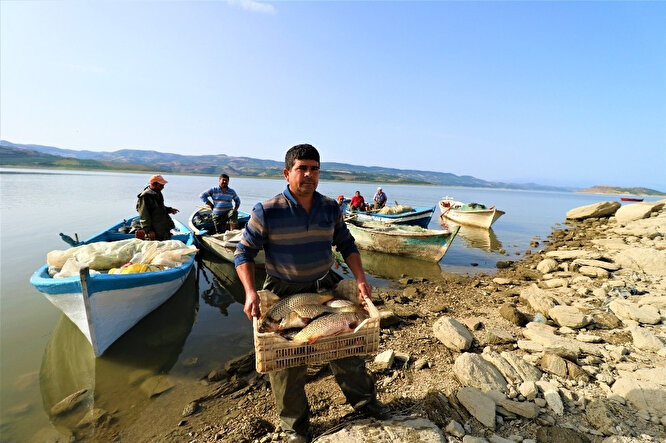 - “Yaklaşık 25 yıldır balıkçılık yapıyorum. Bu sezon normal başladı. Havaların çok sıcak olmasıyla beraber balıklar yattı. Sıcaktan dolayı biraz avlanmada sıkıntı oldu. Su seviyesinin düşük olması nedeniyle de bize çok zararı oldu. Barajların doluluk oranı biraz daha fazla olsaydı çok daha güzel olacaktı. Fiyatlar da normal sazan balığımız 10 lira, yayın balığımız 11 lira şeklinde satış yapıyoruz. Yayın balığımız Bursa, Aydın tarafına çok gidiyor. Sazan balığımız da Manisa il genelinde çok gidiyor. Sazan balığımızı genellikle Manisa’da tüketiyoruz ama yayın balığımızı dışarıya veriyoruz. Otellere çok satılıyor.”