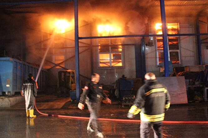 Düzce 1. Organize Sanayi Bölgesi'nde faaliyet gösteren otomotiv ürünleri fabrikasında henüz belirlenemeyen nedenle yangın çıktı.