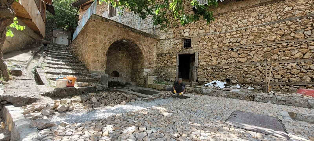 Çocukluktan itibaren taş işçiliği yapan Olgunöz, ilçede sokak yollarını, ihtiyaç duyulan alanları taşlarla döşüyor.