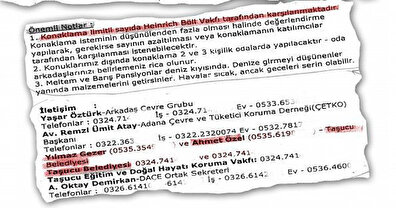 - Döneme ilişkin belgeler söz konusu eylemlerde Alman Heinrich Böll Vakfı'nın desteğini gözler önüne seriyor. Örneğin, 12 Mayıs 2004 tarihli belgeye göre, Akdeniz Çevre Platformu (AKÇEP) kendi üyelerine gönderdiği davet metninde "21-22-23 Mayıs 2004 günleri Silifke/Taşucu’nda Heinrich Bölll Vakfı'nın desteğiyle gerçekleştiriyoruz" ifadesini kullanıyor.