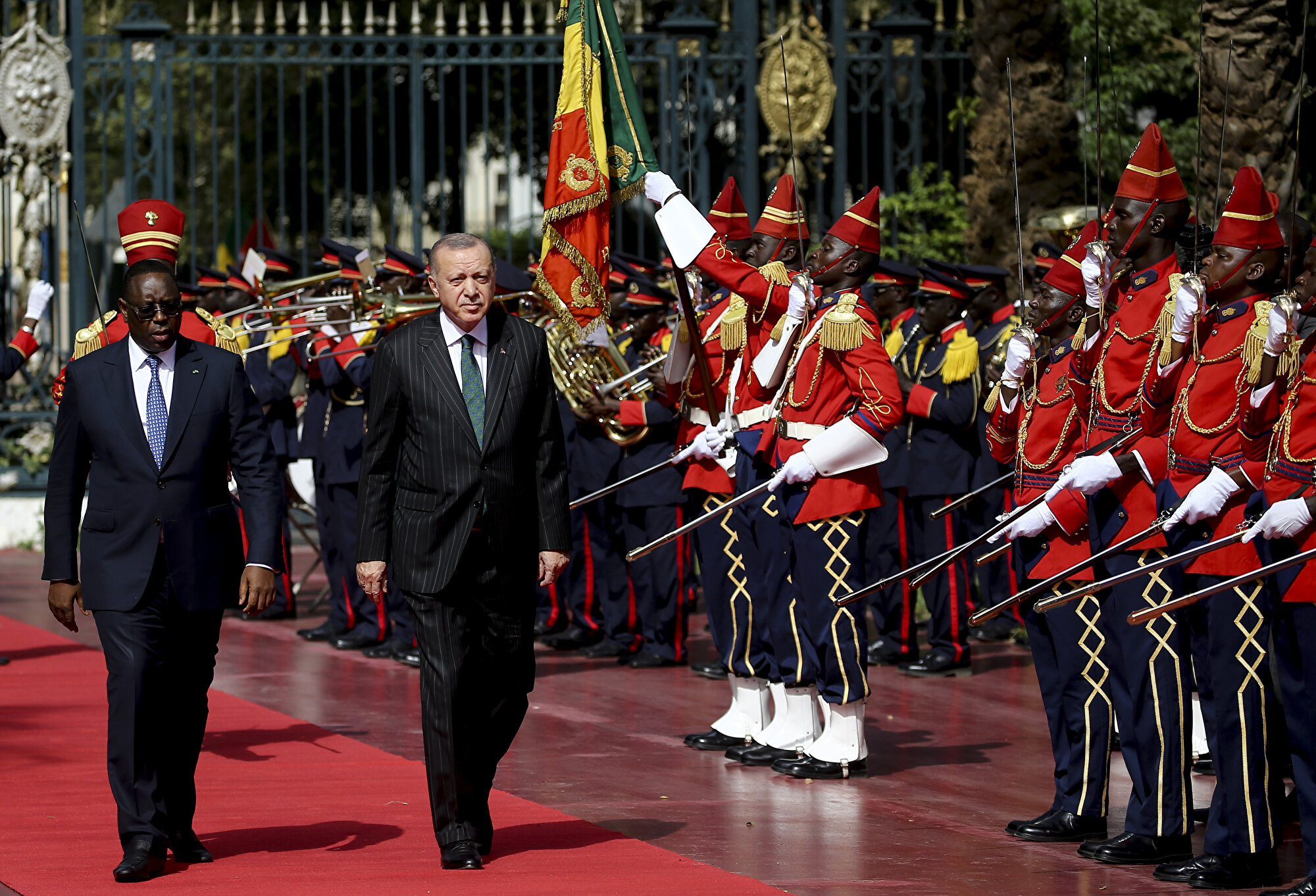 Cumhurbaşkanı Recep Tayyip Erdoğan, Senegal Devlet Başkanı Macky Sall’ın davetine icabetle geldiği Dakar’da resmi törenle karşılandı. Erdoğan, Senegal Cumhurbaşkanı Macky Sall ile bir araya geldi.
