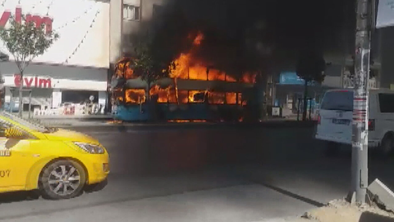 Alev alev yanan otobüste zaman zaman ufak çaplı lastik patlamaları da meydana geldi. İtfaiye ekiplerinin müdahalesiyle yangın kısa sürede söndürüldü. Bir vatandaş yaşananları anlatırken yangının çıkış nedeni henüz belirlenemedi.