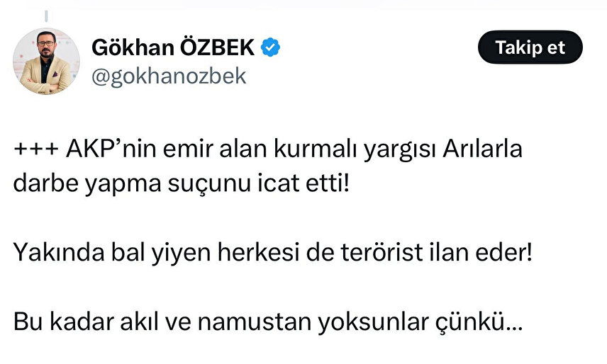 23 Derece adlı yayın platformunun sahibi Gökhan Özbek gözaltına alınmış, sosyal medya hesabı X üzerinden yaptığı paylaşımda, "Gözaltına alınıyorum. Kalın sağlıcakla" ifadelerini kullanmıştı. Yargıya "akıl ve namustan yoksunlar" dediği için 112 gün adli para cezası karşılığı olarak 11 bin 200 TL para cezası alan, cezası 4 takside bağlanan Gökhan Özbek'in borcunu ödemediği için gözaltına alındığı öğrenildi. Parayı ödediği takdirde serbest bırakılacağı belirtildi.